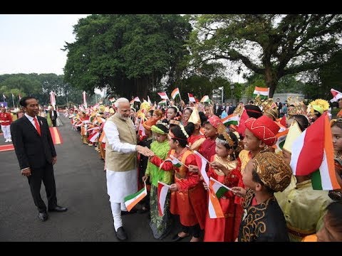 Prime Minister Narendra Modi receives a ceremonial welcome in Jakarta, Indonesia
